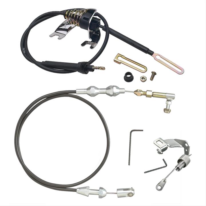 These Summit® throttle cable and kickdown cable Pro Packs have been put together to save you time and money when installing a throttle cable. They include a new Lokar braided stainless steel throttle cable, a throttle cable bracket, and a return spring, and they are also available with an automatic transmission kickdown cable. Don't worry--whether you're working on a Ford, GM, or Mopar, we will have you covered with one of these Summit® throttle cable and kickdown cable Pro Packs.